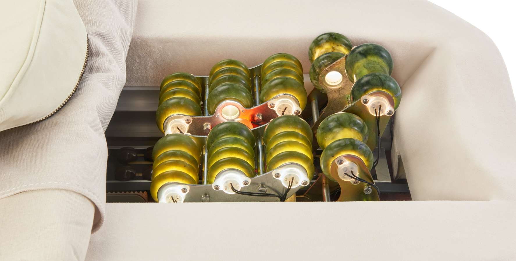 Cele 9 role lucrează paravertebral, iar cele 4 dedicate gambelor oferă un masaj unic în România.